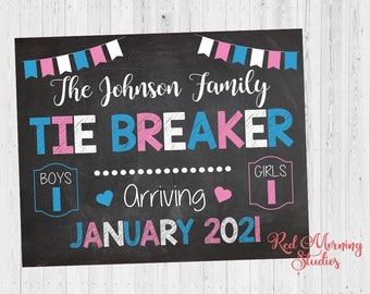 Tie breaker onesie, tie breaker baby, baby announcement, tie breaker announcement, baby announcement, team boy, team girl, gender reveal. I know this has taken me such a long time to edit but its finally here. If you're expecting a girl, consider using a crown or tiara in your gender reveal photo. Sometimes, you just write your guess on a piece of paper and place it in a jar. Message us for more info about booking our farm.